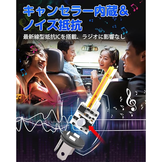 『最新の線型キャンセラー&ノイズ防止』h4ledヘッドライトが日本車専用キャンセラーを搭載、コンパクトサイズで、複雑な配線なし、取付便利の上で、99%の車種対応できます。ご注意:日本車専用キャンセラー、外車にはいけません。業界最新の線型キャンセラーを搭載で、日本のFM周波数帯域に影響がありません、ラジオにノイズを入りません、車の中央コンピューターにも影響はありません。/製品情報:品名:h4 led 車検対応/三年保証、ノイズキャンセラー内蔵、無極性設計、定電流保護回路搭載【ハイブリッド車・EV車対応】/ケルビン数:6500K/照度:40000cd以上/対応電圧:DC12V車 20W*2/寿命:約50000時間以上/セット内容:h4 ヘッドライト 爆光*2