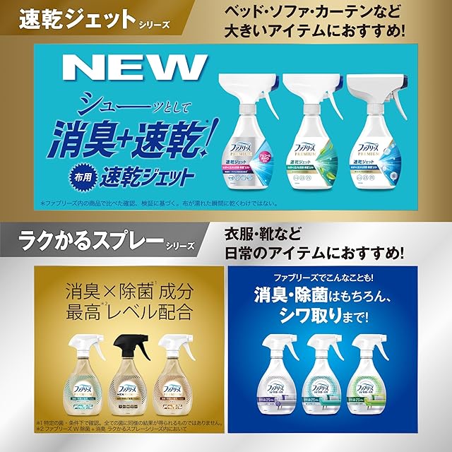超消臭・速乾* *ラクかるスプレーW除菌+消臭シリーズに比べて