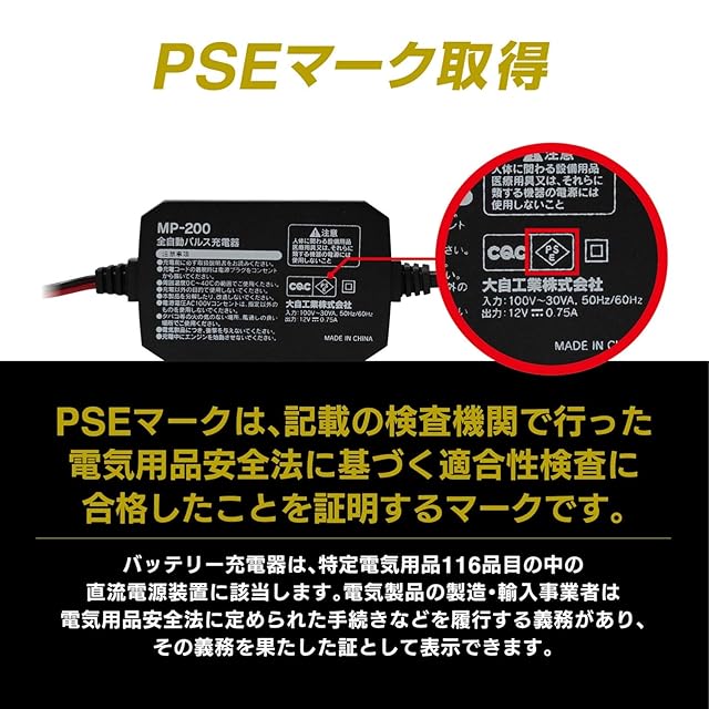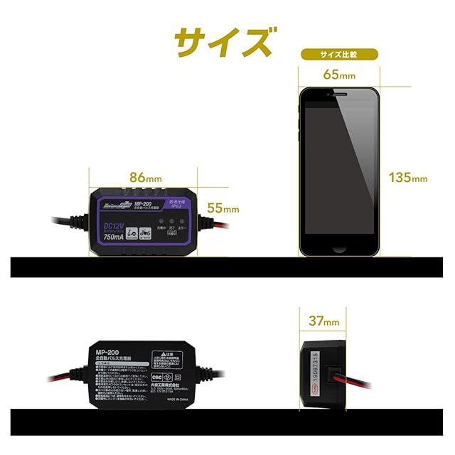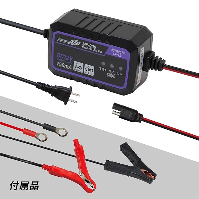 メルテック(meltec) 全自動パルスバッテリー充電器 (ファミリーバイク/オートバイ) 12V専用 MeltecPlus 定格0.75A バッテリー診断機能付 維持充電(トリクル充電)方式 長期保証3年 MP-200