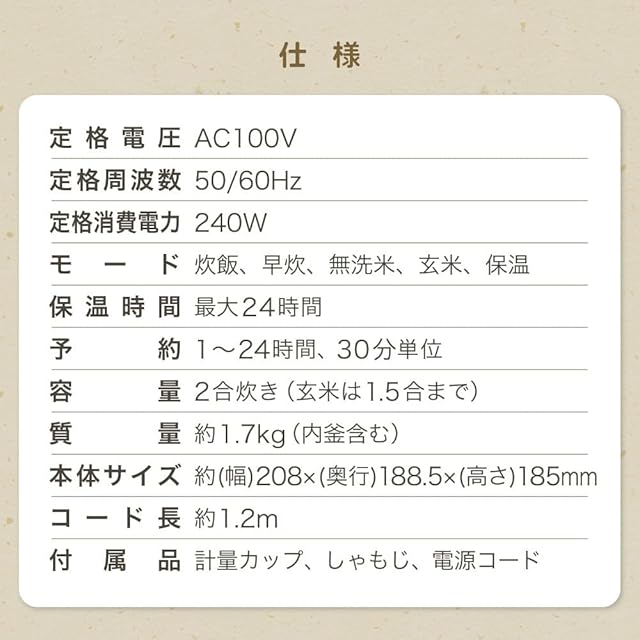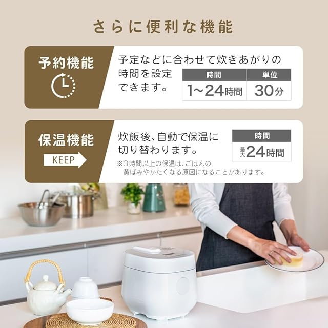 1人暮らしの方にもご家族にもおすすめの2.0合炊き 毎日のご飯を炊きたてで食べられる2.0合の少量炊きだから1人暮らしの方はもちろん、2でもおわかりができます。