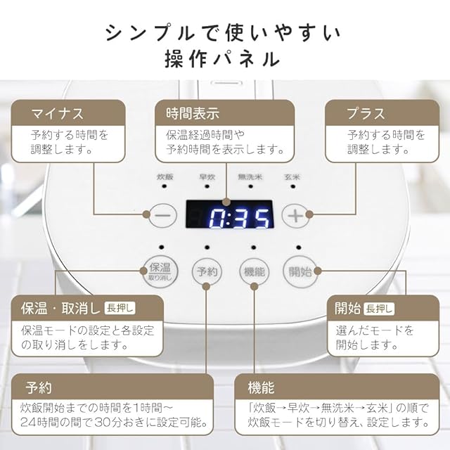 MAXZEN 炊飯器 一人暮らし ひとり暮らし 1人暮らし 無洗米 2合 2.0合 新生活 おしゃれ 二人暮らし 2人暮らし 早炊き ミニライスクッカー フッ素内釜 保温 予約 少量炊き 玄米 二合炊き ミニ キッチン家電 炊飯ジャー ホワイト RC-MX201 マクスゼン