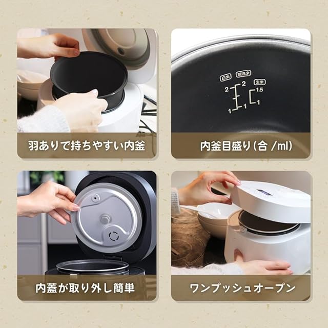 少量だから毎回おいしく炊ける2.0合炊飯器 少量炊き専用の炊飯器なら、深い水量でお米が躍るように対流が生まれてふっくらおいしいご飯に仕上がります。
