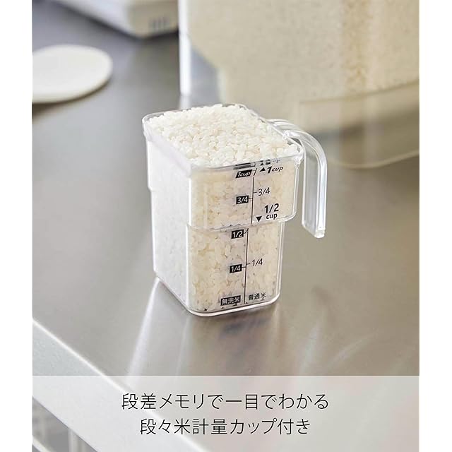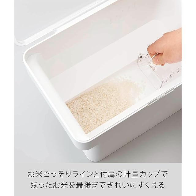 山崎実業(Yamazaki) 密閉 シンク下 米びつ 5kg 計量カップ 付 ホワイト 約W30XD19.7XH19.2cm タワー お米ごっそりライン 最後まできれいにすくえる 3377
