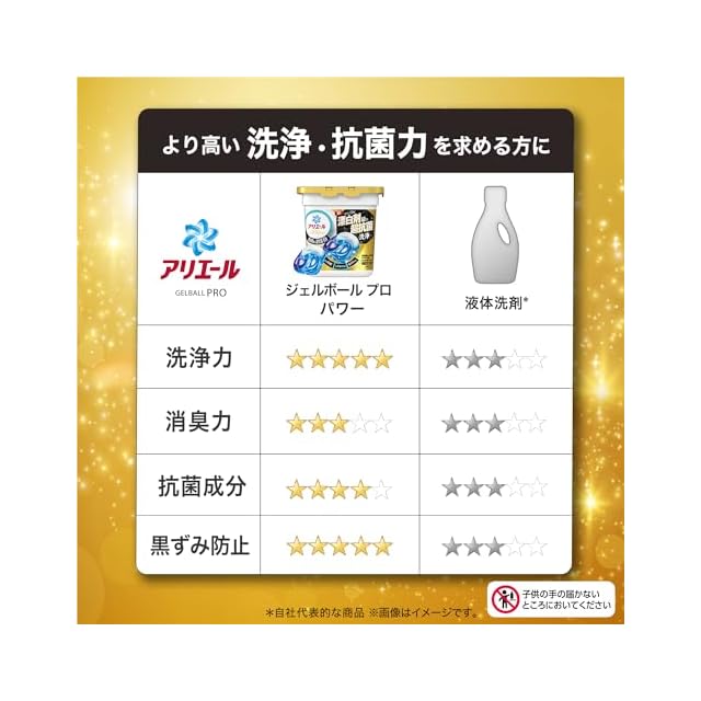 最高量の洗浄成分*1で、食べ物汚れに洗濯機投入の漂白剤を超えた洗浄力*2(*1 アリエールジェルボールと比較、*2 2023年7月時点の市場No.1液体洗濯用洗剤とNo.1酸素系液体漂白剤の併用での比較(P&G調べ))