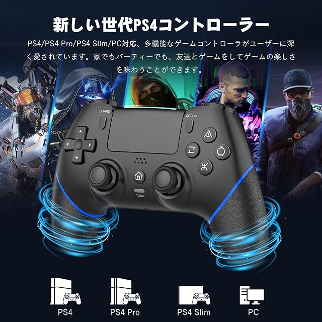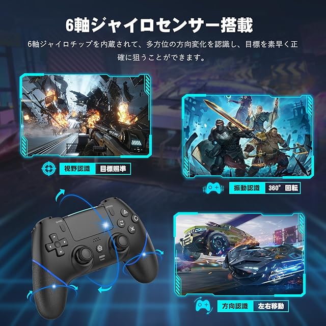 【2024人気PS4コントローラー】Onefun/2024年新時代のPS4用無線コントローラーを新登場!PS4ハンドルは先代に対して、機能性、さまざまな面からグレードアップされたモデルです。TELEC認証、その他多くの認証(CE/FCC/RED/ROHS)を取得しています。高度な機能と快適でスムーズな操作を備えた最新のBluetooth接続を使用しています。10 メートルの距離で遅延がゼロで、高速フィードバック、瞬時の送信、100% の安定性を保証します。P3/P4/P4 Pro/P4 Slim/PC(Windows7/8/10)に対応できます、高い交換性を持つ。4つのコントローラーの同時接続をサポートします、友人や家族とよりいいゲーム体験を思う存分に楽しめます。