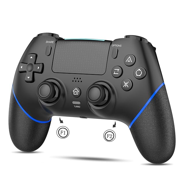PS4コントローラー【2024年金賞·新版】Onefun ps4 コントローラー 大容量1000mAh 背面ボタン付き マクロ機能 Turbo自動連射機能 6軸ジャイロセンサー搭載 Bluetooth無線接続 16時間連続使用 イヤホンジャック付き 高耐久ボタン ワイヤレス4コントローラー P4/P4 Pro/Slim/PC対応 日本語取扱説明書 (ブラック/ブルー)