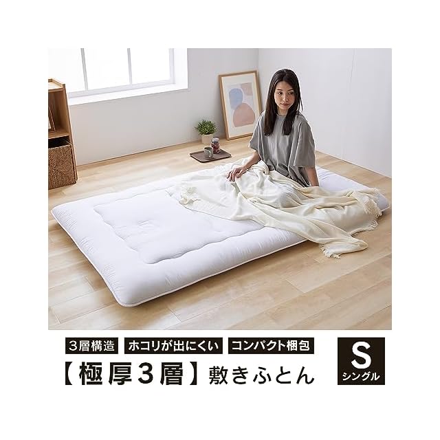 アイリスプラザ 敷き布団 三層構造 極厚10cm ボリューム感 ウレタン入 巻綿使用 しっかり支える ホコリ出にくい 肌触り コンパクト 三つ折り シングル