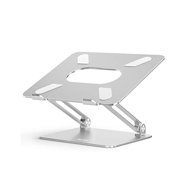 BoYata ノートパソコンスタンド pc スタンド タブレット 無段階高さ/角度調整可能 姿勢改善 腰痛/猫背解消 安定性 折りたたみ式 アルミ合金製 17インチ以下のデバイスに対応 シルバー