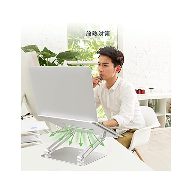 【放熱対策・滑り止め】●肉厚でしっかりとした造りながら、中央に大きな穴が開いているのでノートPCなどの放熱が気になるものを載せても平気です。●シリコンゴム製の滑り止めパッドが上下両面(接地側およびパソコン側)の接地面に付いているので、滑りにくく安定して使えます。また、構造上、pc スタンドの下に空間ができるので、書類を広げたり、使わない時はキーボードをしまっておけたりできるのが助かっています。