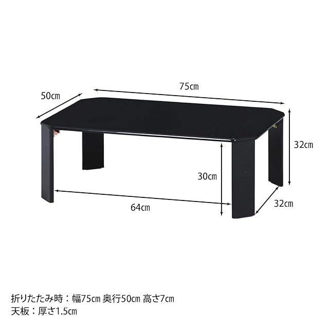 不二貿易(Fujiboeki) ローテーブル 折りたたみテーブル 幅75×奥行50×高さ32cm ブラック UV塗装 お手入れ簡単 角が丸い ルーチェ 38417