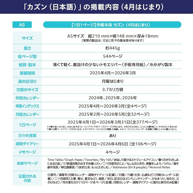 ほぼ日手帳 2025 手帳本体 カズン(A5)[A5/1日1ページ/4月/月曜はじまり]