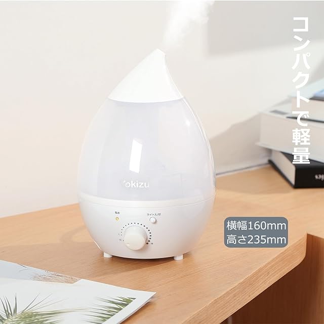 Yokizu 加湿器 小型 卓上 大容量 除菌 アロマ 超音波式 LEDライト しずく型 お手入れしやすい 静音 省エネ 加湿機 次亜塩素酸水対応 デスク オフィス 寝室 リビング 乾燥対策 焚き防止 おしゃれ コンパクト 6-10畳 ホワイト