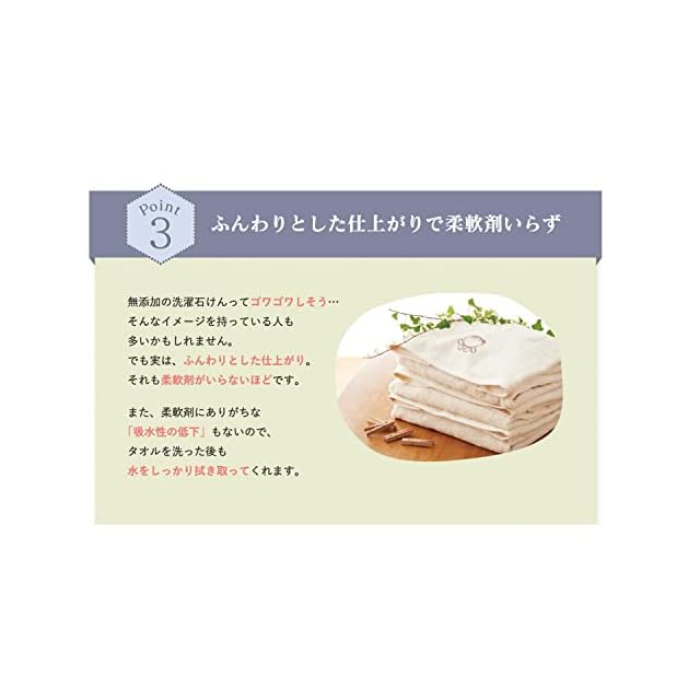 ふんわりやわらかく洗い上がるので、柔軟剤は不要。