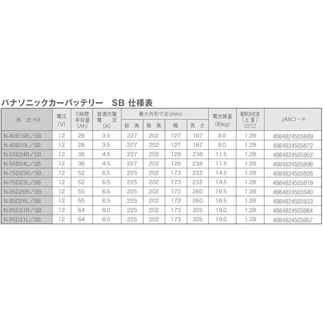 パナソニック(Panasonic) 国産車バッテリー SBシリーズ N-40B19L/SB 標準車用 Battery