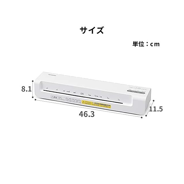 最大ラミネート幅:33cm最大ラミネート厚:0.4mmラミネート速度:約230/280mm(50/60hz)