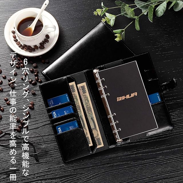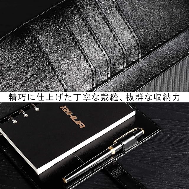 【RIHUA】 システム手帳 バイブルサイズ 手帳 革 6穴リング スケジュール帳 カバー リフィル付き メモ帳 カード収納 ノート システム手帳 手帳カバー ビジネス手帳 ルーズリーフ手帳 聖書サイズ システム手帳 ビジネス オフィス用品
