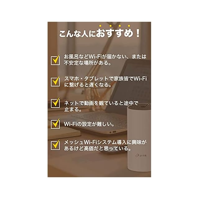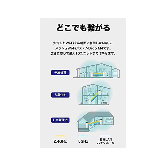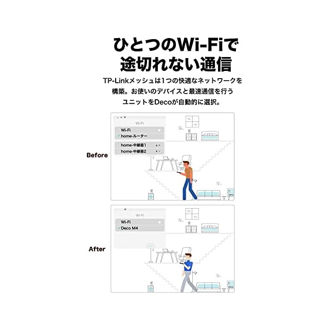 [特徴] 隅々まで途切れないWi-Fi空間を構築する最先端のメッシュWiFiシステム Deco M4